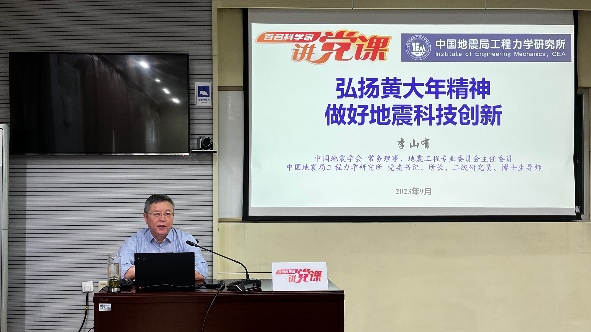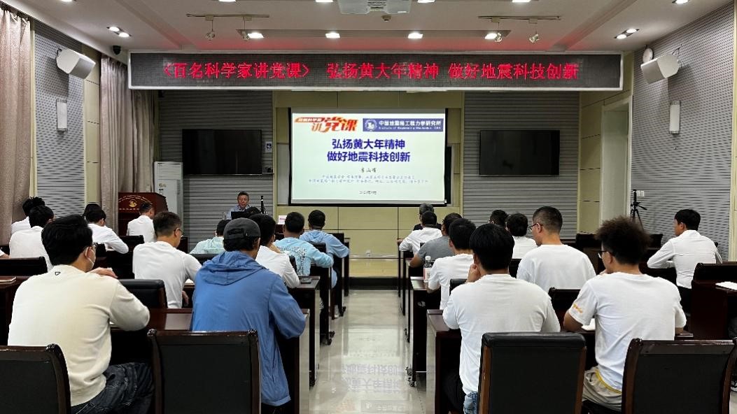 發布時間: 2023-09-15 點擊數量:11029為有效發揮中國科協黨校全國學會分校政治引領“主陣地”、黨性錘煉“大熔爐”作用,中國科協科技社團黨委組織開展了“百名科學家講黨課”活動。受中國地震學會邀請,9月14日,中國地震學會常務理事、地震工程專業委員會主任委員,我所黨委書記、所長李山有同志以《弘揚黃大年精神 做好地震科技創新》為題為所辦計財黨支部、工程地震研究中心黨支部及碩士研究生第二黨支部講授專題黨課。