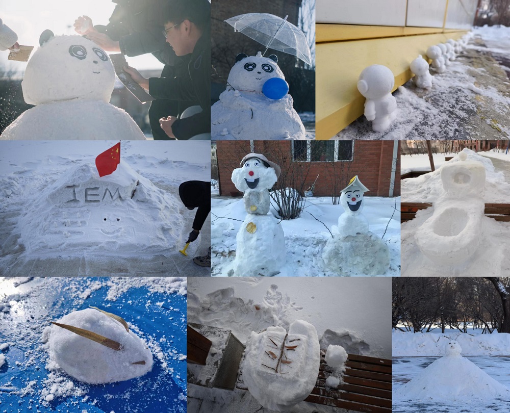 伴著冬日的暖陽,研究生們三五成群聚集在我所各個角落,他們手持鏟子和搜集來的各種工具熱情洋溢地準備著,有人運雪、有人滾雪球、有人塑形、還有人在精心地裝扮雪人,同學們忙得不亦樂乎,盡情享受著堆雪人比賽帶來的激情與快樂,仿佛把自己真摯的情感也融入了雪花之中。同學們充分發揮想象力和創造力,創作出各種各樣的雪人作品。這些雪人有的造型別致、有的栩栩如生、有的趣味十足,讓人忍俊不禁,充滿著冬季的歡樂與活力,成為工作區中一道道靚麗的風景。經全所職工共同參與,最終評選出優秀作品3個。