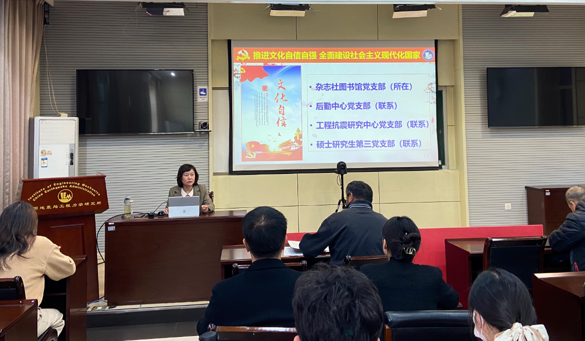 3月21日,黨委委員、副所長張令心同志以“推進(jìn)文化自信自強(qiáng),全面建設(shè)社會主義現(xiàn)代化國家”為題,為雜志社圖書館黨支部、后勤中心黨支部、工程抗震研究中心黨支部、碩士研究生第三黨支部宣講黨的二十大精神。