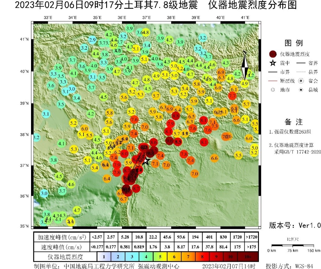 發(fā)布時間: 2023-02-08 點擊數(shù)量:5972據(jù)中國地震臺網(wǎng)正式測定:02月06日09時17分,在土耳其(北緯37.15度,東經(jīng)36.95度)發(fā)生7.8級地震,震源深度20公里。