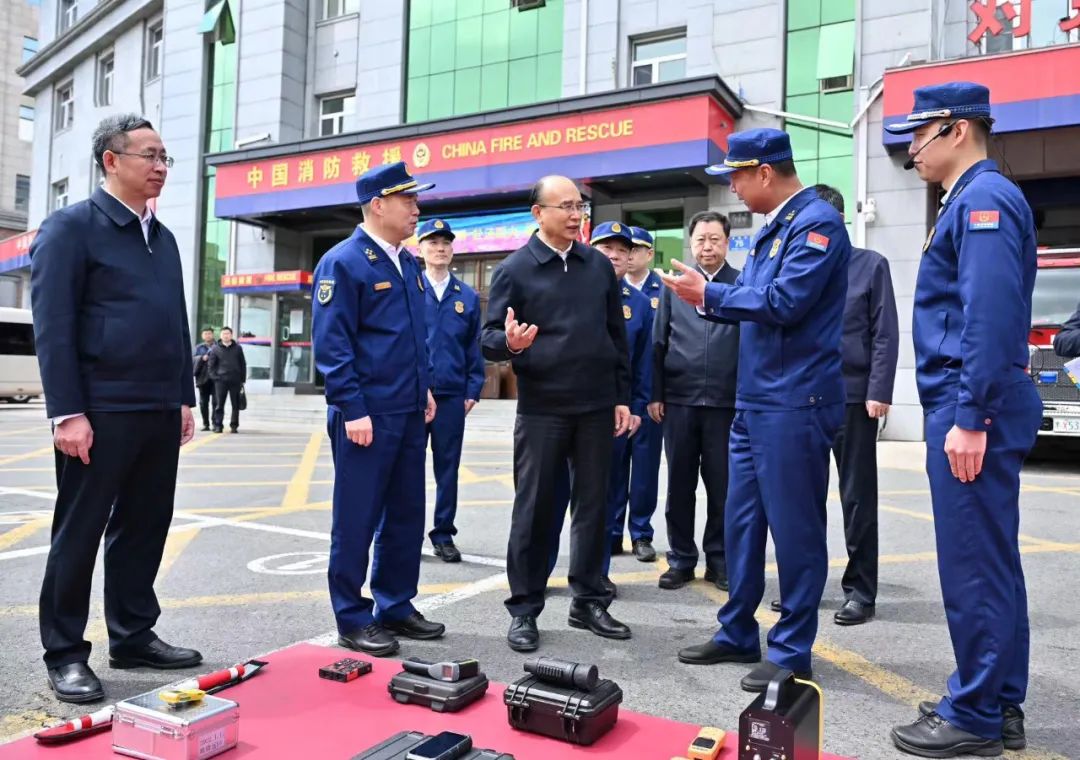 在道里區消防救援大隊,許勤了解消防救援車輛和裝備器材配備使用情況,觀摩火警處置演練,代表省委省政府向消防指戰員致以問候。他指出,消防救援隊伍是應急救援主力軍,要忠實踐行習近平總書記重要訓詞精神,圍繞全災種、大應急需要,加強實戰實訓,練就過硬本領,保持臨戰狀態,確保召之即來、戰之必勝,守護好人民安全、城鄉安全。