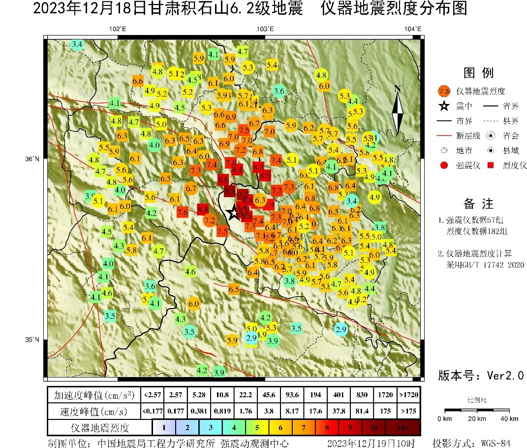 圖1甘肅積石山6.2級地震儀器地震烈度分布圖