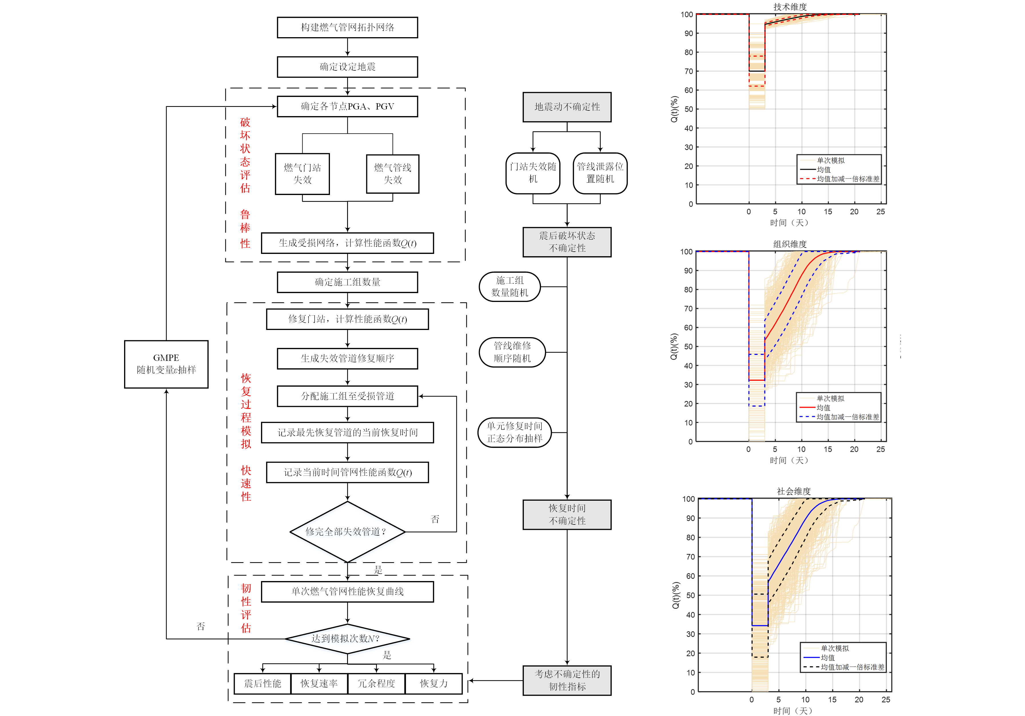 圖2 城市燃?xì)夤芫W(wǎng)抗震韌性定量評(píng)估流程與結(jié)果