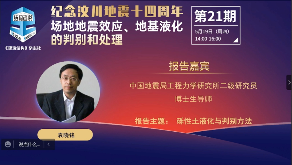 我所袁曉銘研究員在“結構者說”直播平臺的專題講座受到工程界歡迎和好評
