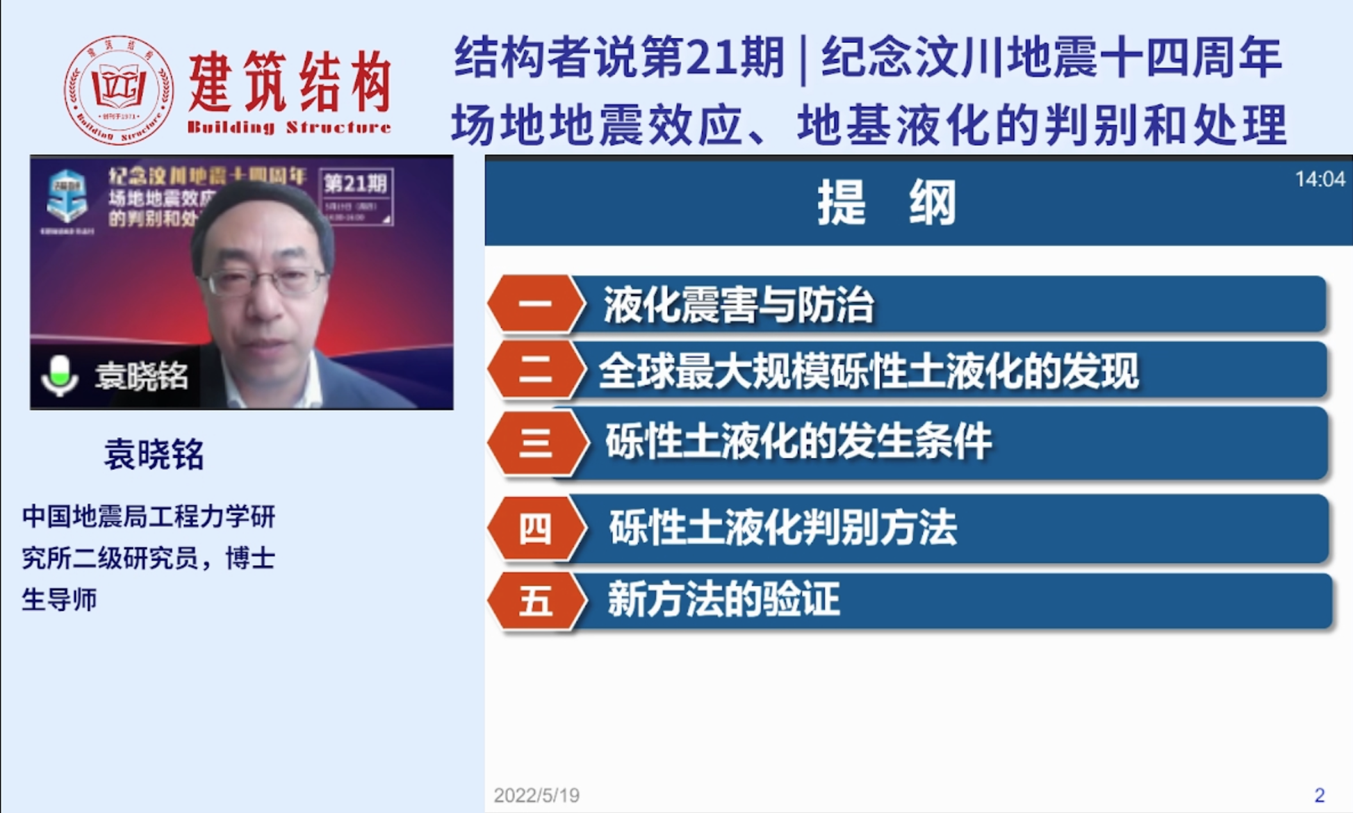 發布時間: 2022-05-24 點擊數量:6530袁曉銘研究員的報告中,介紹了2008年汶川大地震中發生的全球最大規模的礫性土液化及震害現象,解釋了礫性土液化的機理和觸發條件;介紹了具有中國特色的礫性土液化判別方法以及通過國際合作對新方法的驗證結果。報告面向一線工程技術人員,采用深入淺出的方式進行講解,受到工程技術人員的歡迎。報告后的互動提問環節,袁曉銘研究員在線回答了聽眾提出的關于“學校和醫院提高一度進行液化設防的必要性”、“礫性土和砂土液化判別方法的差別”、“不液化和不考慮液化概念的區別”等一系列問題。